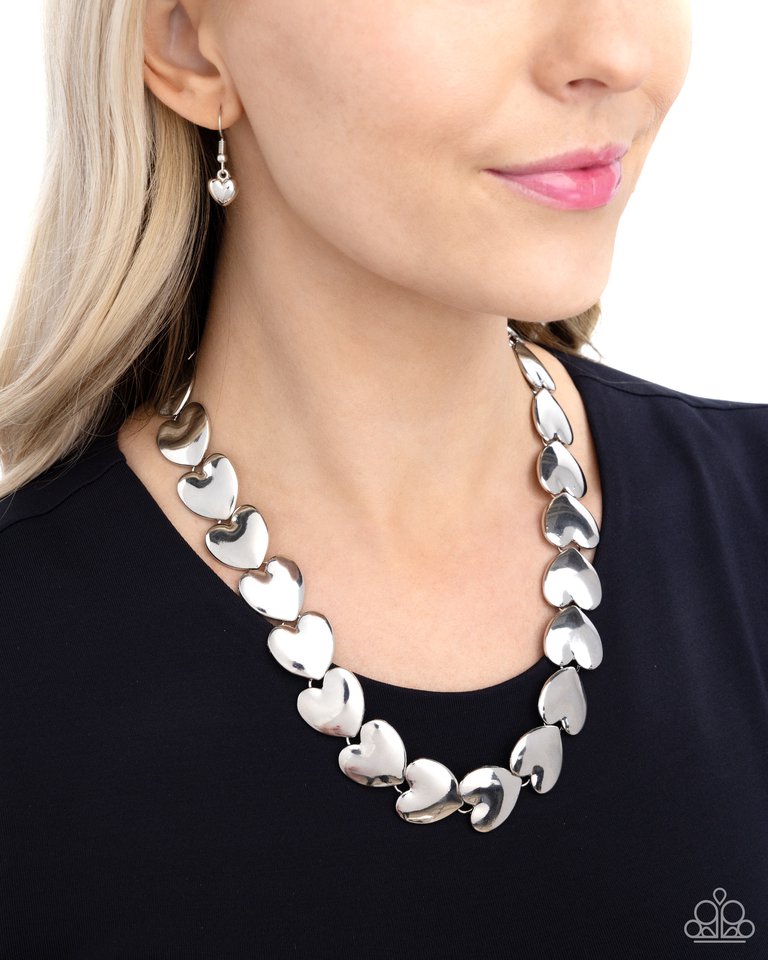 Collar Paparazzi ~ Corazones de reliquia - Plata