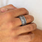 A faceted diamond-shaped pattern races across the center of a thick gunmetal band for a tactile look. Features a stretchy band for a flexible fit.