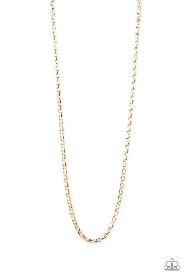 Featuring clasp-like links, an ornate gold chain drapes across the chest for a causal look. Features an adjustable clasp closure. Sold as one individual necklace. Complete your style with the "K.O. - Gold" bracelet. Explore more Paparazzi jewelry at Paparazzi New Releases, Paparazzi Bracelets, and Paparazzi Necklaces collections.