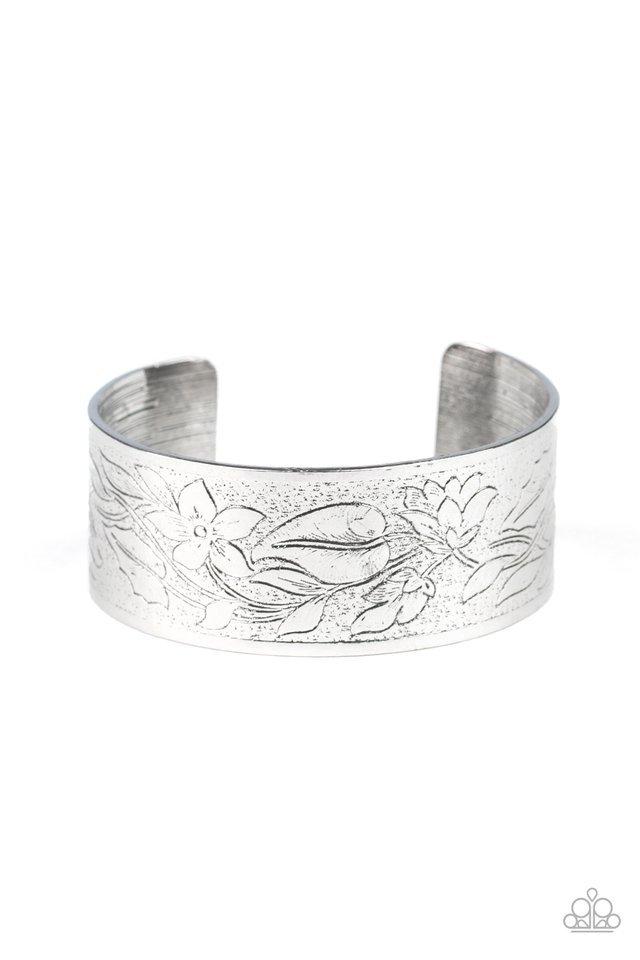 Paparazzi Bracelet ~ Garden Variety - Silver is a stunning addition to your accessories collection. The antique brushed finish and whimsical floral pattern make this silver cuff a must-have for the season. Sold as one individual piece, this bracelet is perfect for adding a touch of elegance to any outfit. Explore more Paparazzi bracelets here!