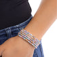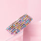 Encased in sleek silver fittings, row after row of glassy multicolored and iridescent rhinestones coil around the wrist, creating a blinding infinity wrap bracelet. Due to its prismatic palette, color may vary.