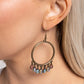 Pressed in brass teardrop frames, a collection of faceted multicolored and UV shimmery teardrop gems swing from the bottom of a shimmery brass hoop, creating a colorful fringe. Earring attaches to a standard fishhook fitting.