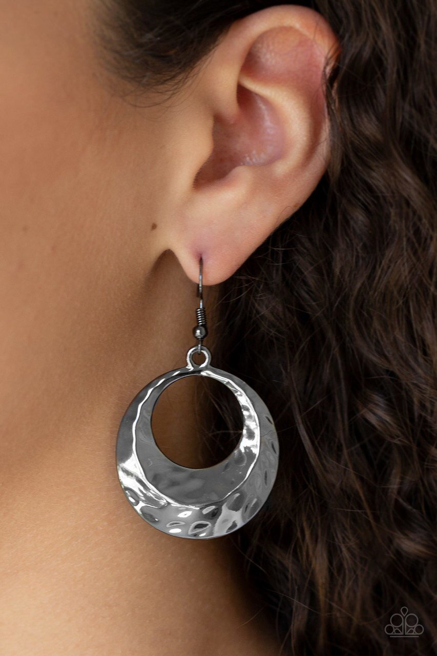 Elevate your style with these Paparazzi Earring Savory Shimmer Black hoops. Crafted with a high-sheen finish, the gunmetal earrings add a touch of casual elegance to any outfit. Attach them easily with the standard fishhook fitting. Sold as a pair, these earrings are a must-have for any jewelry collection. Explore more stunning Paparazzi earrings at Paparazzi Jewelry Earrings.