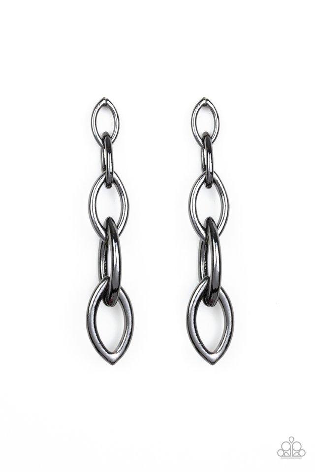 New to our collection, the Paparazzi Street Spunk Black Earrings offer a high-sheen finish. These edgy earrings feature glistening gunmetal links that increase in size as they trickle from the ear. A standard post fitting keeps them secure. Sold as one pair of post earrings, they are a must-have for any fashionista. Explore our earrings collection for more trendy options.