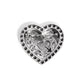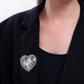 Embossed with silver flowers and a duo of silver hearts threaded with a cupid's arrow, a silver stud-bordered heart stands out as a romantic centerpiece. Brooch measures approximately 2" in length and 2 1/4" in width.