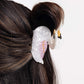 Featuring a swan motif, this one-of-a-kind claw clip holds the hair away from the face for an on-the-go whimsical display. Clip measures approximately 3" in length and 2 1/4" in width.