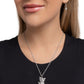 A delicate silver chain showcases a dazzling cat pendant. Encrusted with glittering rhinestones, the cat charm is given a whimsical yet sophisticated look. Its black rhinestone eyes and nose add an adorable contrast to the design, making it a charming accessory for any cat lover. Features an adjustable clasp closure.