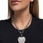 A cluster of dazzling white rhinestones creates a glamorous heart-shaped pendant that swings from oversized silver links, creating a bold and radiant design. The brilliant white rhinestones gradually increase in size as they reach the center. Features an adjustable clasp closure.