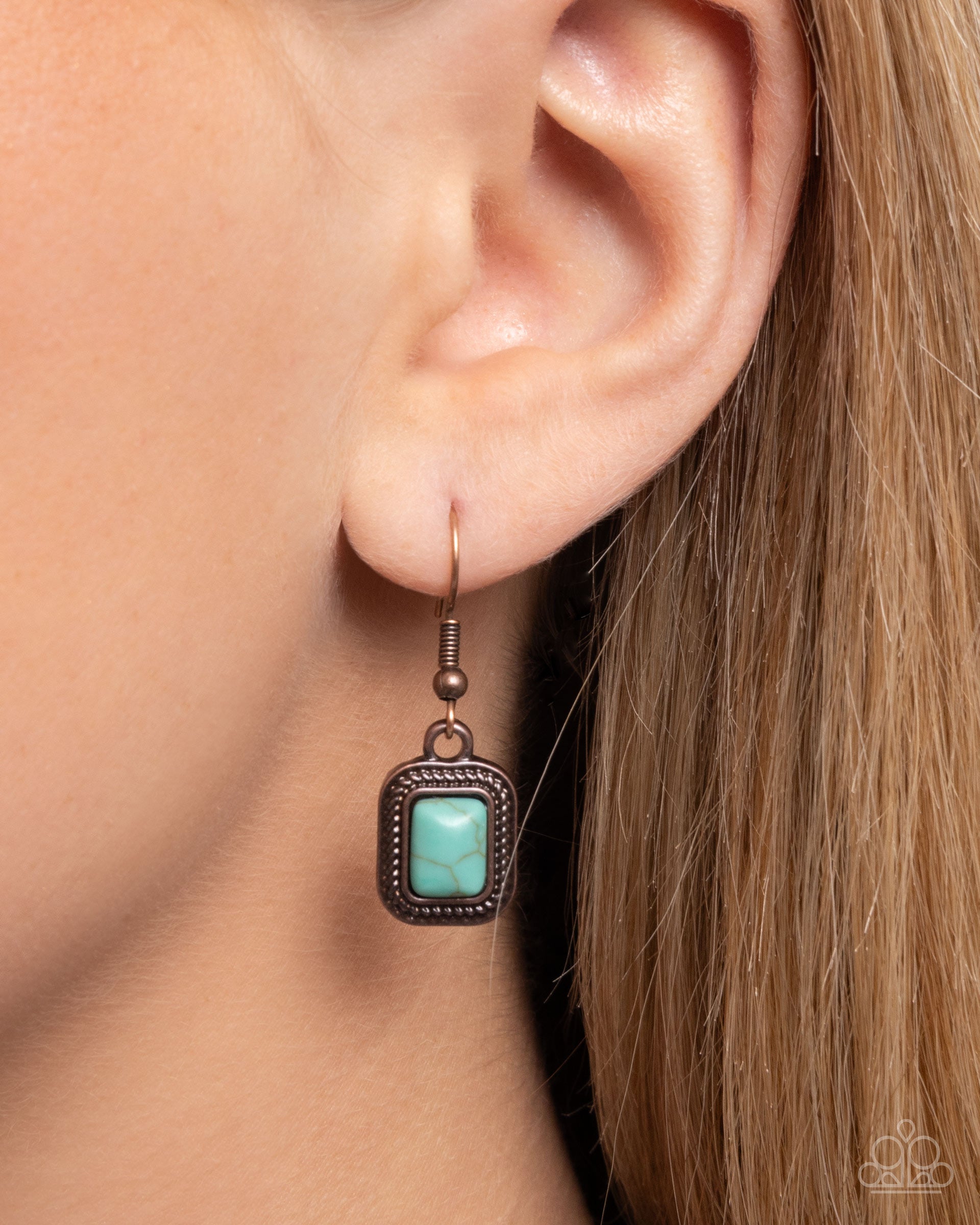 Pressed in a rope-textured, rounded antiqued copper frame, a rounded rectangular turquoise stone glides along a classic copper rope chain for a spot of Southwestern color. A highly-detailed antiqued copper longhorn skull pendant gives way below the turquoise stone for a Western finish. Features an adjustable clasp closure. As the stone elements in this piece are natural, some color variation is normal.