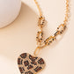 Elongated, oversized gold links, encrusted with a blinding display of tea, black, and topaz rhinestones and shimmery gold accents connect a classic gold chain to an exaggerated gold heart pendant for a romantically refined finish. Featured on the oversized gold heart, layers upon layers of glitzy tea, black, and topaz rhinestones emboss across its entire surface as the hearts gradually increase in size from the center. Features an adjustable clasp closure.