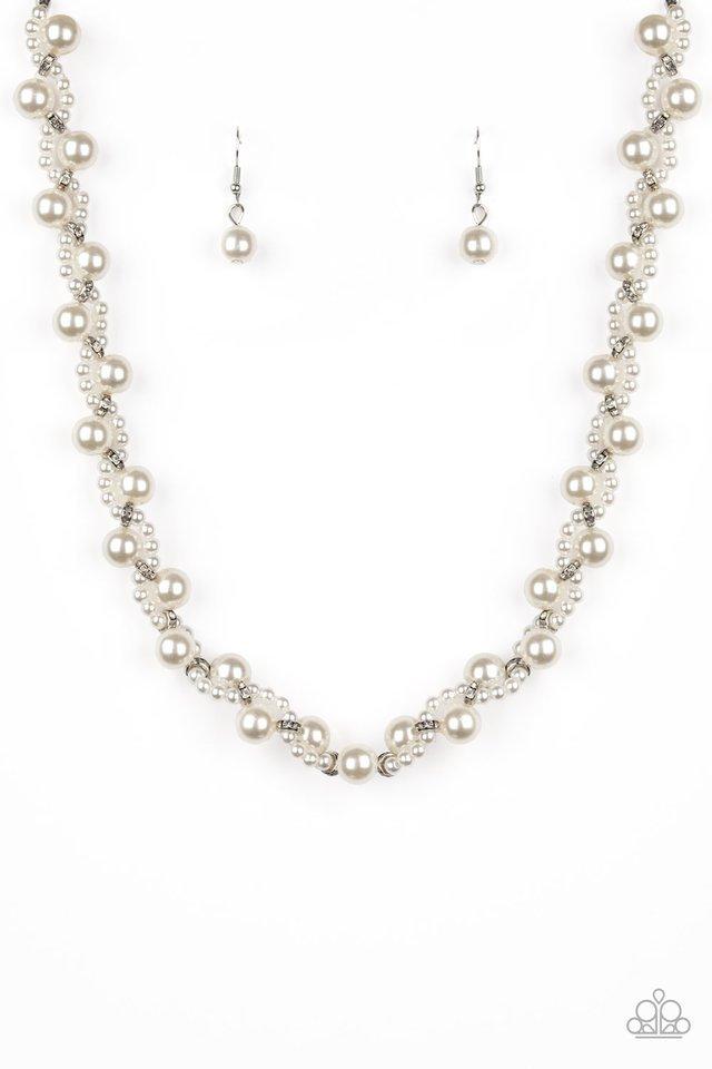 Indulge in timeless elegance with the Uptown Opulence White Necklace. This exquisite piece features classic white pearls delicately woven with dainty pearls and rhinestone encrusted rings. With an adjustable clasp closure, this necklace is versatile and chic. Pair it with the "Utmost Uptown - White" bracelet for a complete look.