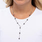 Dusted in hematite rhinestones, glistening ornaments trickle and alternate alongside sleek silver bars, extending below the chest in a y-shaped pattern for an opulent sprinkle of color. Features an adjustable clasp closure.