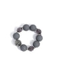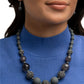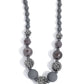 A blend of matte gray beads, faceted smoky accents, and oversized marbled gray beads is interspersed with dazzling hematite-encrusted spheres along the neckline. Features an adjustable clasp closure.