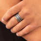Brushed in an antiqued tin finish, two rows of faceted square studs stack across a silver band for a rustic look. Features a stretchy band for a flexible fit.