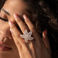 Embellished in dainty emerald-cut white gems, white rhinestones, and dainty rose gold studs, a curly rose gold starfish glistens and reflects lights in every direction atop the finger for a candescent coastal centerpiece. Features a stretchy band for a flexible fit.